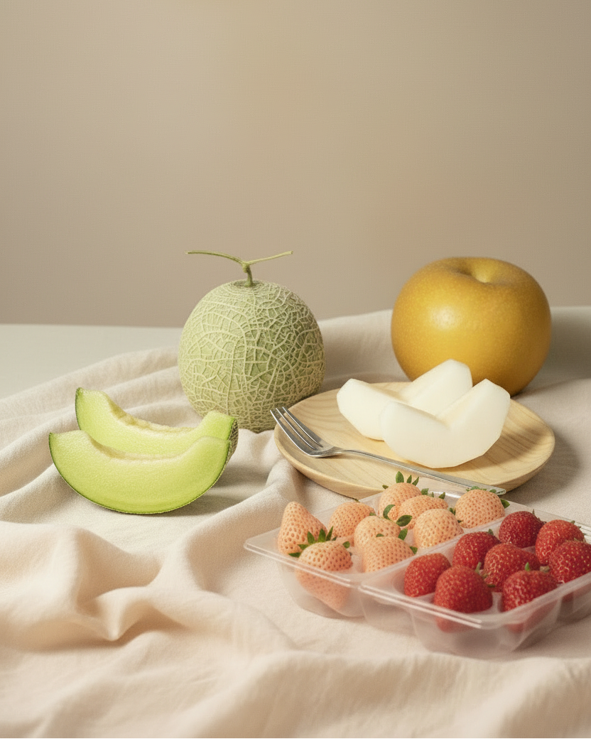 to crisp Japanese pear and fragrant Japanese strawberries —